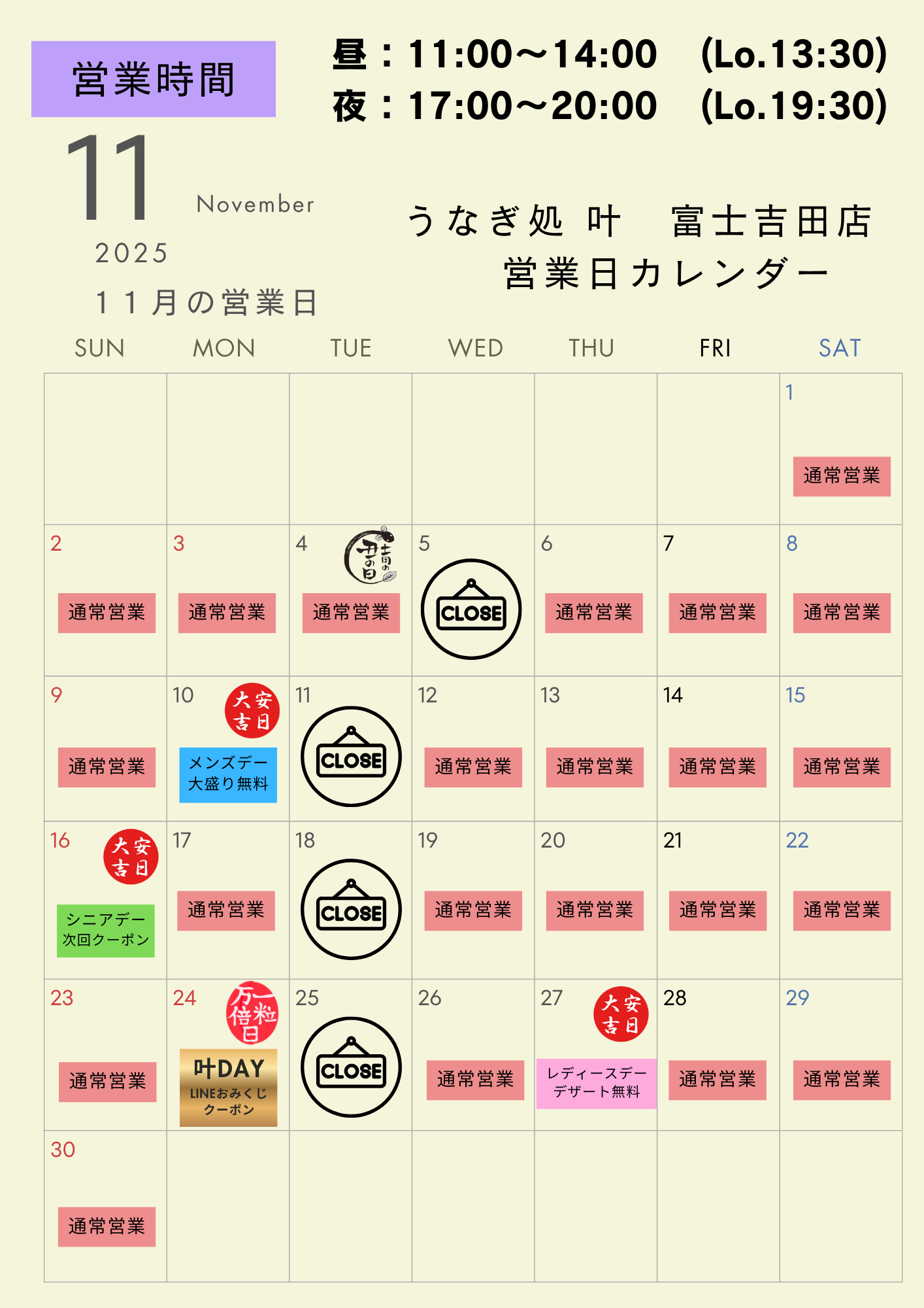 11月よりメンズDAY・レディースDAY・シニアDAY・叶DAYの4つのDAYイベントがスタートします!