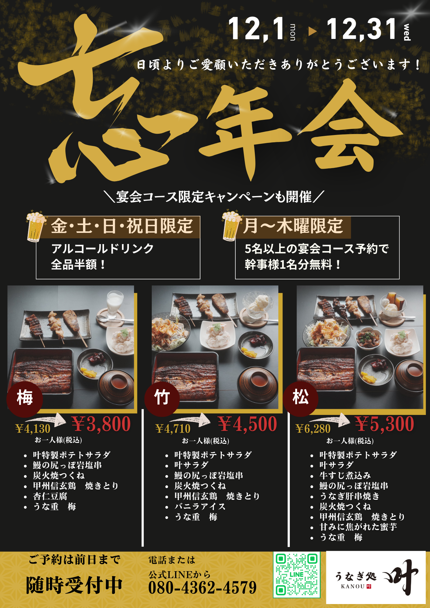 12月もメンズDAY・レディースDAY・シニアDAY・叶DAYの4つのDAYイベント開催します!