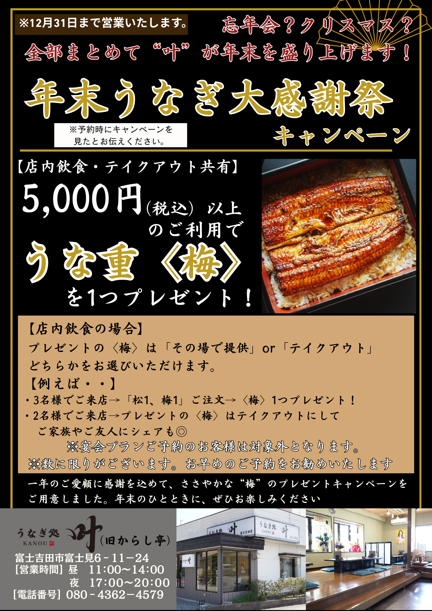 ご自宅でも職場でも「うなぎ処 叶」の自慢の味を