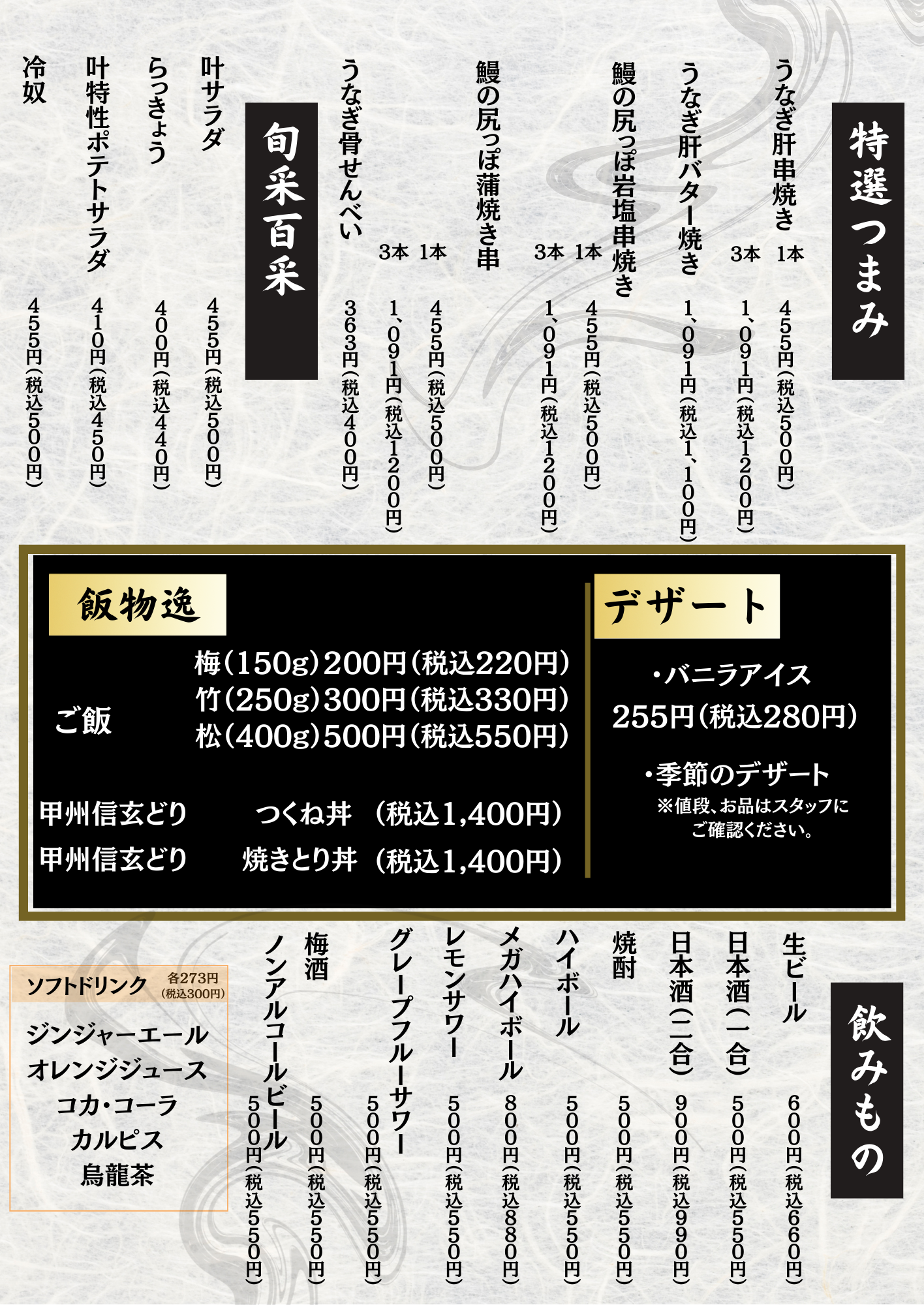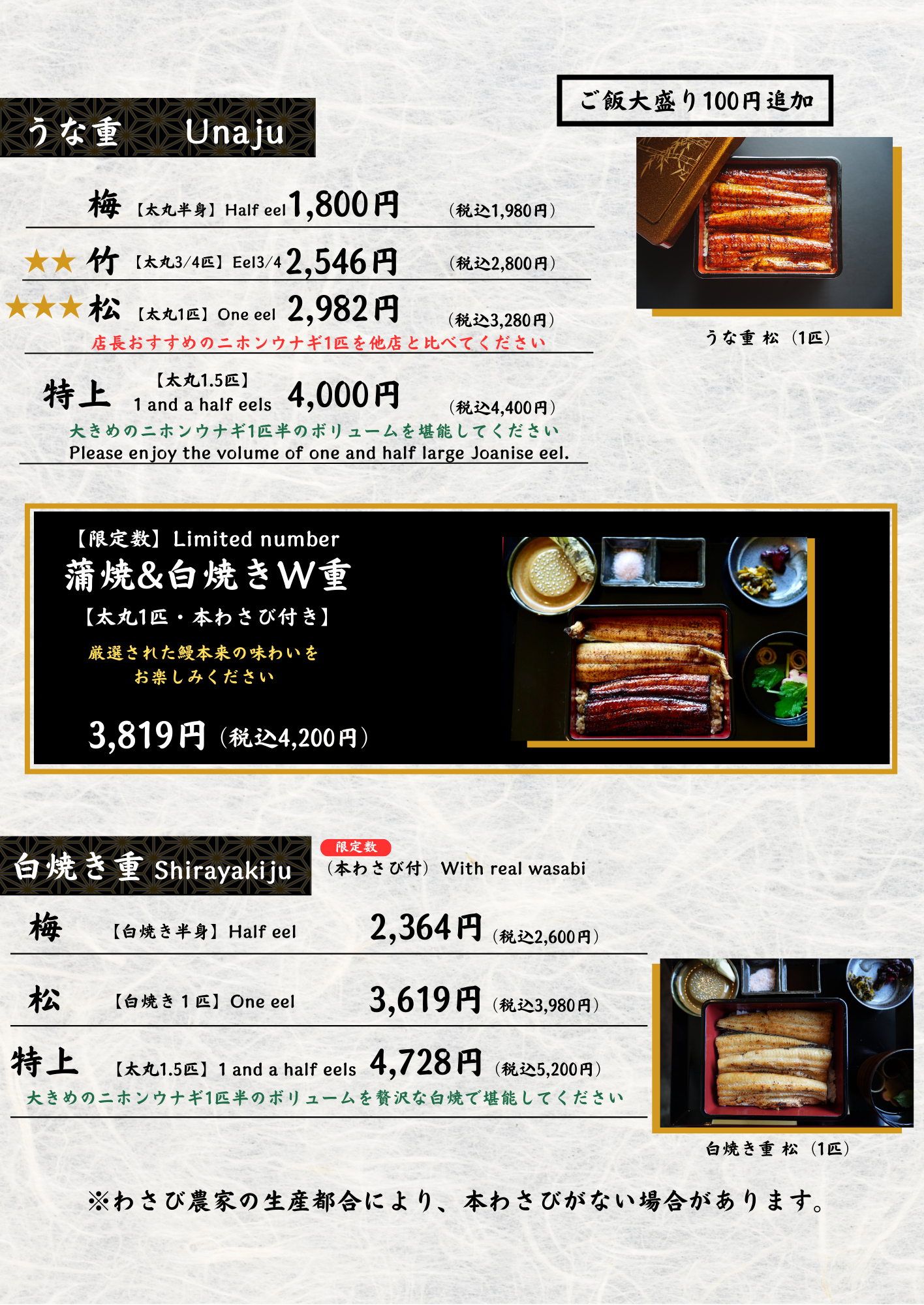 厳選されたうなぎと特製タレが調和し、満足感いっぱいの味わいをご堪能ください。